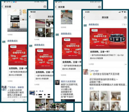同时,森歌的宣传部队在发挥了战斗堡垒作用,在618期间大力投放抖音、微信朋友圈、今日头条等新媒体。